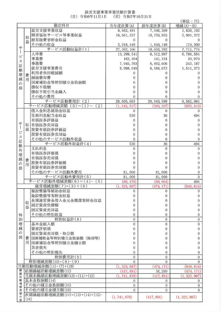 ・就労支援事業事業活動計算書