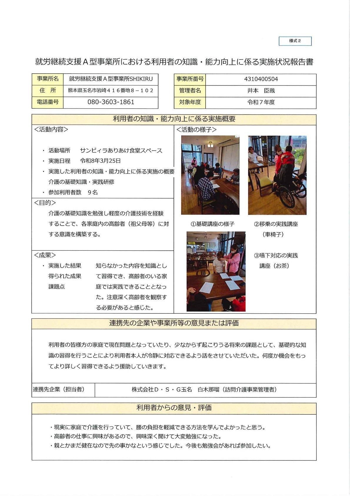 ・利用者の知識・能力向上に係る実施状況報告書